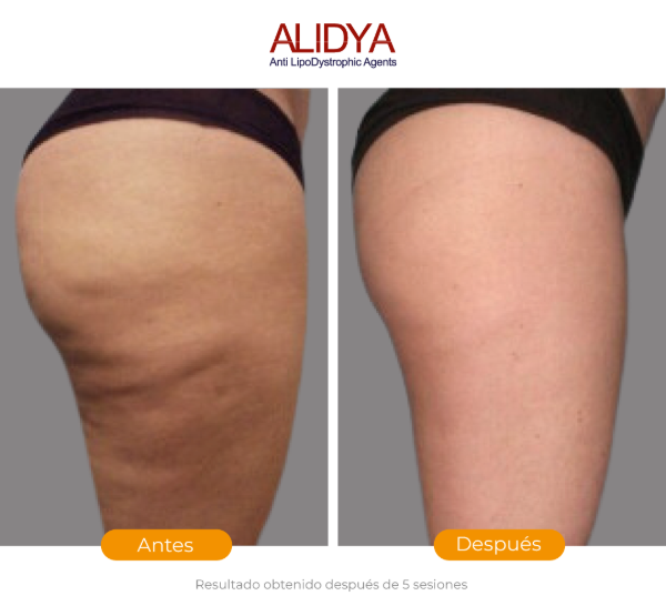 Alidya® es un dispositivo médico inyectable diseñado específicamente para prevenir y tratar la celulitis (lipodistrofia ginecoide). Su fórmula combina agentes quelantes, aminoácidos y antioxidantes que actúan sobre las causas estructurales de la celulitis, mejorando la microcirculación, reduciendo toxinas y restaurando la calidad del tejido subcutáneo.
